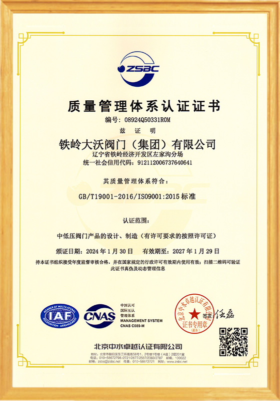鐵嶺大沃閥門(集團)有限公司,是原鐵嶺閥門廠改制后,以原國有企業各領域的骨干精英為核心所組建的創新型企業。公司在傳承老“鐵閥”所積淀的“管理嚴格、質量第一”精神的同時,將“以客戶為中心,市場為導向,科技創新為支撐”作為發(fā)展理念;將“修為礪器,誠信匠心”作為核心價值觀。在近十年的發(fā)展歷程中,鐵嶺大沃人通過不懈地探索和創新,逐步形成了獨特的經營模式及核心競爭力。成為遼寧省企業廳命名的省級創新型企業;成為通過ISO 9001質量管理體系、ISO14001環(huán)境管理體系和ISO 18001職業健康安全管理體系認證,以及特種設備制造許可證認證......